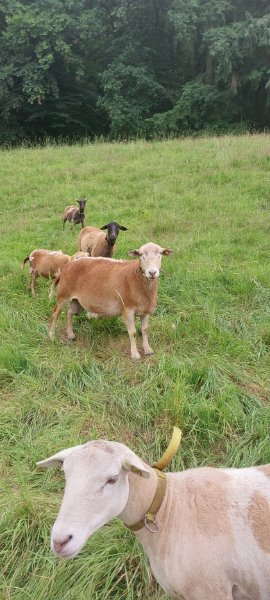 Bei zwei Bocklämmern ist die Mutter ebenfalls aus Herdbuchzucht. Bei den anderen drei Bocklämmern haaren die Muttertiere sauber ab und entsprechen überwiegend dem Zuchtziel.