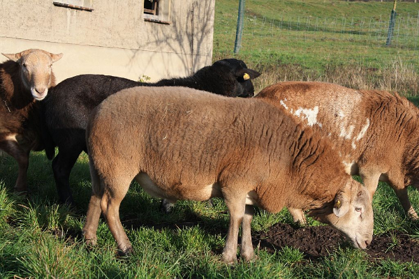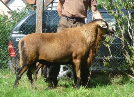 Nolana - Landschaf - Jungbock aus Herdbuchzucht abzugeben. Geboren wurde er Ende März 2015. Der Bock ist bereits gekört (Bewertung 8/8/8). Mit sechs Monaten wog er bereits 66 kg, gegenwärtig dürfte er zwischen 75 und 80 kg wiegen. Es ist davon auszugehen, dass er ein Endgewicht von über 100 kg erreicht, da er von einer 80 kg schweren Mutter und einem Bock mit einem Gewicht von über 100 kg abstammt. Es handelt sich um einen Zwilling. Er hat bereits vollständig und ohne Nachhilfe abgehaart. Der Bock ist handzahm und umgänglich.